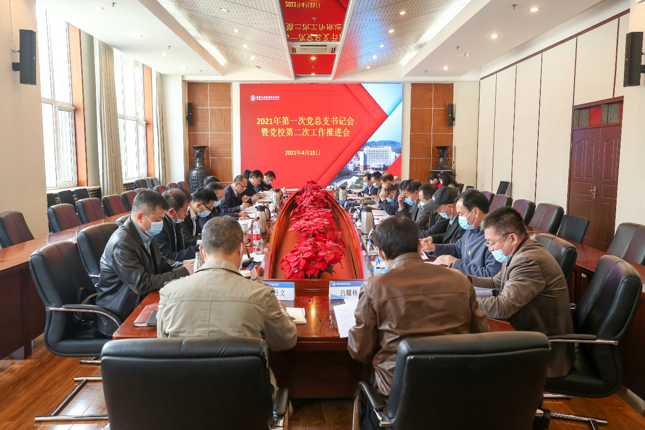 4月15日上午,我校在匠心楼第四会议室召开2021年第一次党总支书记工作会暨党校第二次工作推进会,校党委书记高喜军、党委副书记魏晓东、党委职能部门负责人及全体党总支书记(直属党支部书记)参加了会议。会议由魏晓东副书记主持。