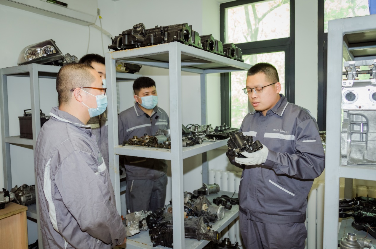 在技术团队的培养上,言传身教,做好传帮带,让员工形成规范、高效、优良的工作习惯。激发身边同事勤于学习,针对机电车间的7名维修技师,制定成长履历、学习计划,做好过程监督、店内辅导、最终完成考核,目前培养经过社会认可的中级工13名,高级工10名,技师及高级技师2名。