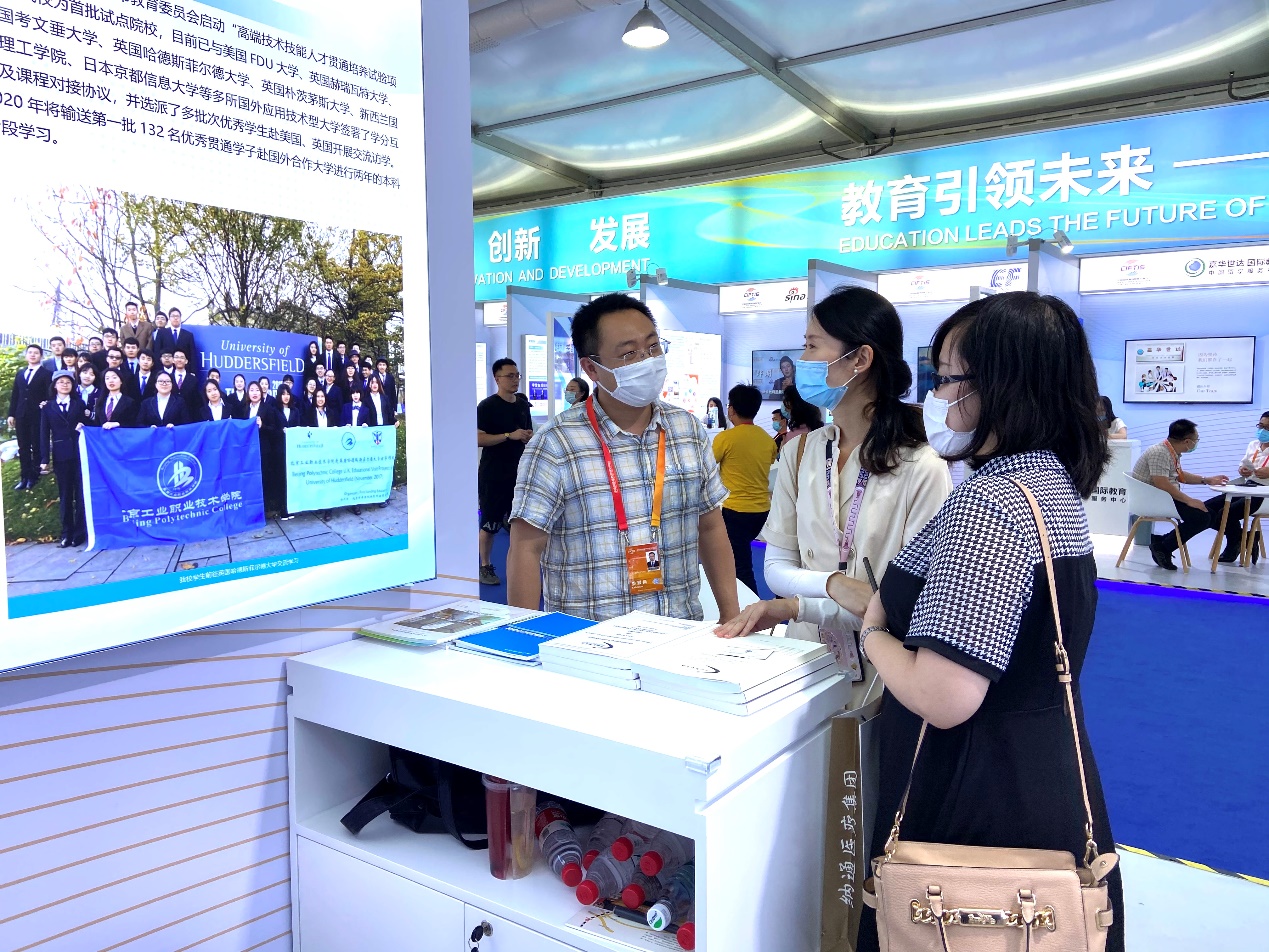 展会期间,不断有观展人员驻足我校展台,观看展板内容和宣传视频,向讲解人员详细了解我校在国际化办学和国际教育服务领域所作的工作和取得的成果。会展期间共接待观众近千人,相关团体百余家。大家对我校的国际化发展、职业教育服务贸易等情况十分关注,多家团体表达了在海外合作办学、专业对接、留学生培养、职业技能培训等方面,希望与爱体育手机官方网站入口展开合作。