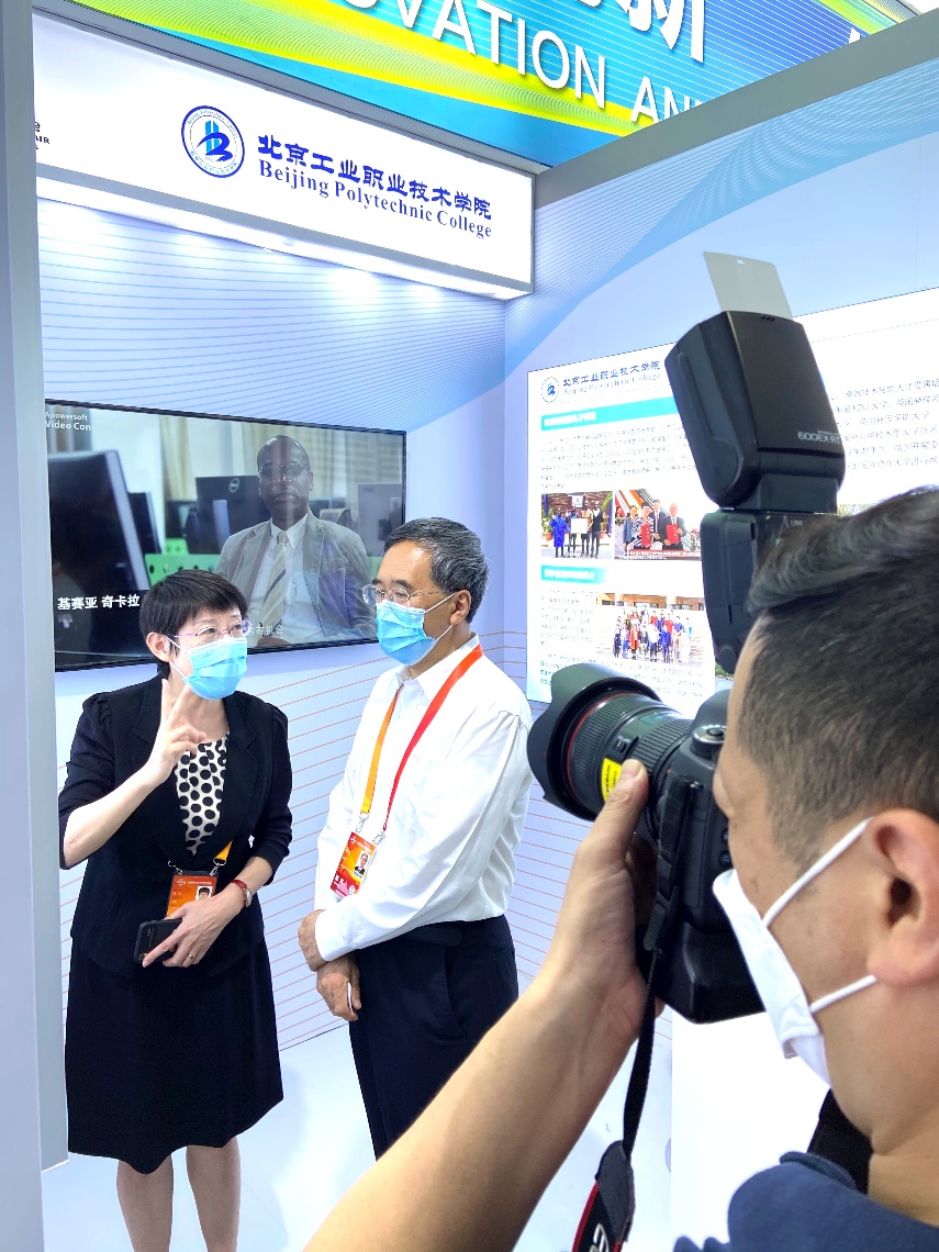 我校参加此次服贸会教育专题展也得到了各级领导的高度关注,原教育部副部长、中国职业技术教育学会会长鲁昕、北京市副市长张家明、市委教育工委常务副书记郑吉春、北京市教育委员会主任刘宇辉、市委教育工委纪检组组长王文生、市教委一级巡视员黄侃、市教委副主任温涛、北京市国际教育交流中心主任谷天刚等多位领导,在展会期间先后莅临我校展位观展指导,详细听取我校领导的讲解汇报,对我校在职业教育领域开展国际教育服务的创新举措和成果给予了充分肯定和高度认可。