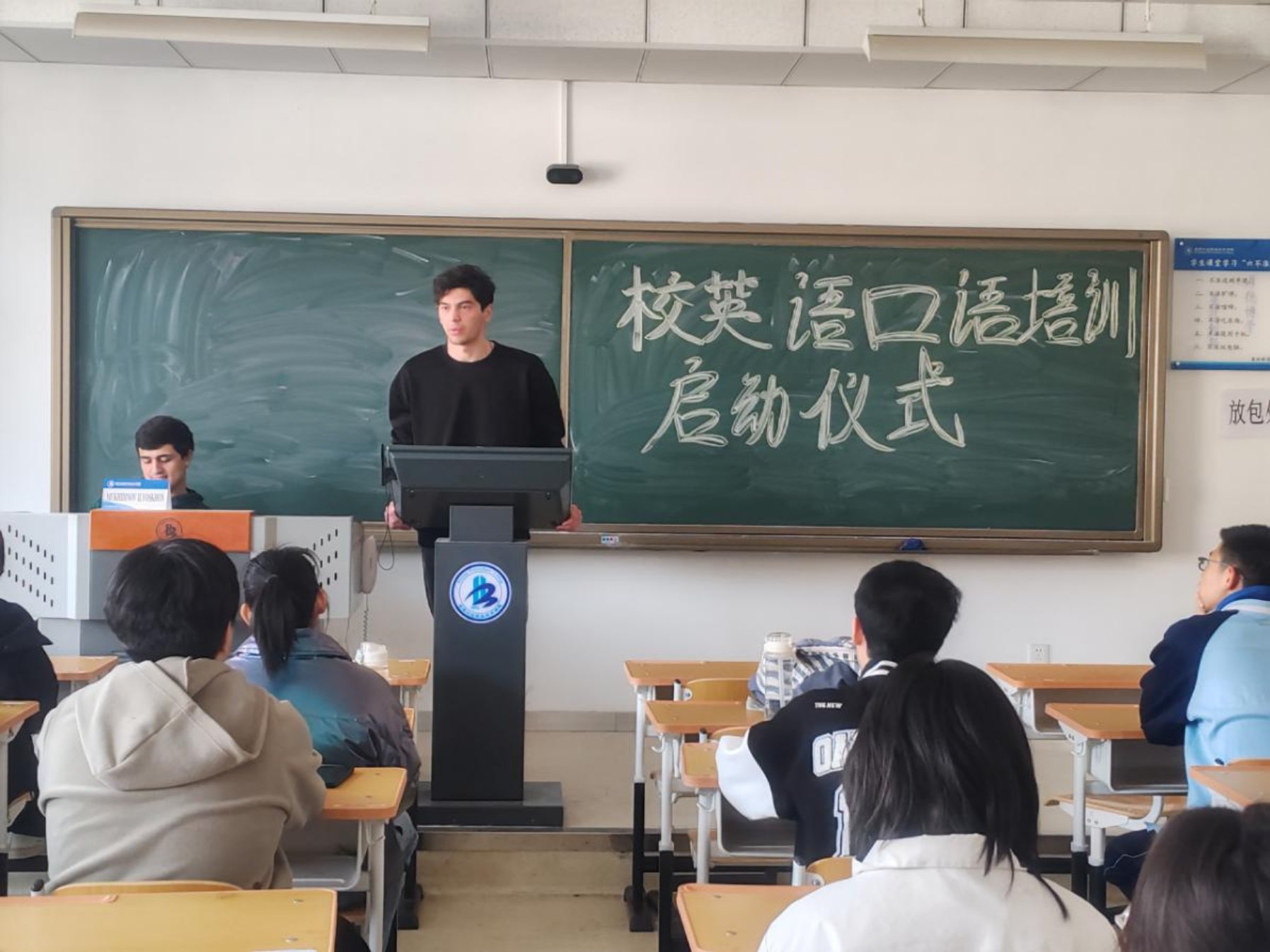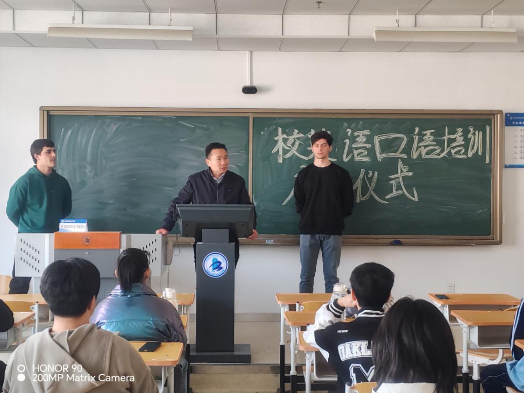 3月28日我校举办2023-2024下半学期学生英语口语公益课开班仪式,英语口语公益课由基础教育学院英语辩论社和国际交流合作处学生国际交流协会共同举办,由两社团主管教师进行指导,由外教和留学生授课,旨在长期利用我校外事资源提高我校学生英语口语能力,促进爱体育手机官方网站入口国际化发展。基础教育学院院长沈杰、中赞职业技术学院分院院长兼孔子课堂负责人马隽、基础教育学院英语辩论社指导教师高远以及来自二级学院的50余名学生参加了开班仪式。