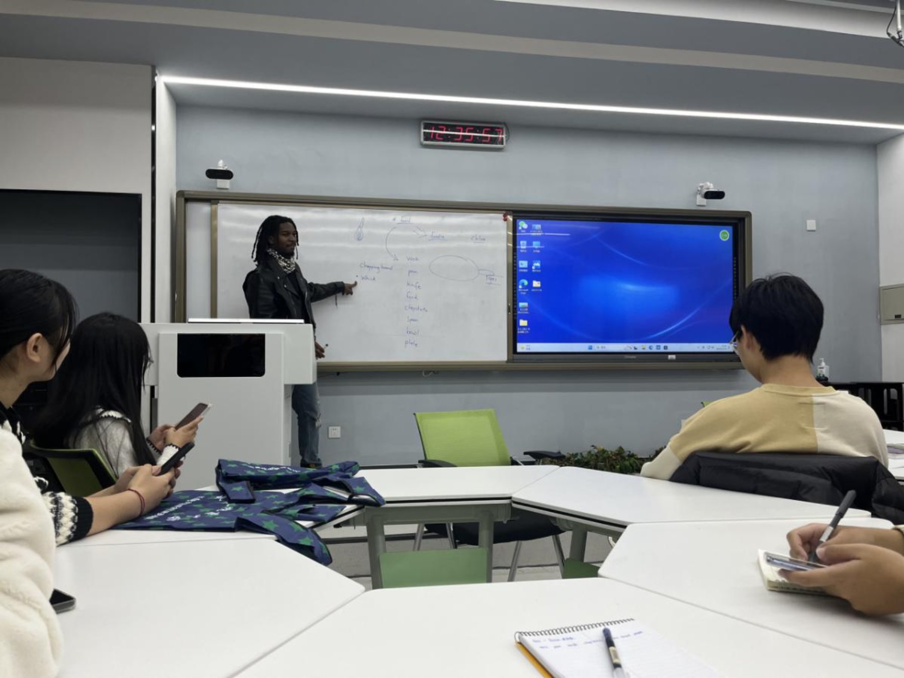 公益课于每周四中午12:30-13:30在匠心楼304和504同时举行,304为高级班由乌干达籍留学生Taric讲授,504为普通班由塔吉克斯坦籍Adam讲授,两名留学生均有流利的英文口语表达能力,基础教育学院英语辩论社指导教师高远和学生国际交流协会王瀛指导留学生教学,保证教学质量和安全。