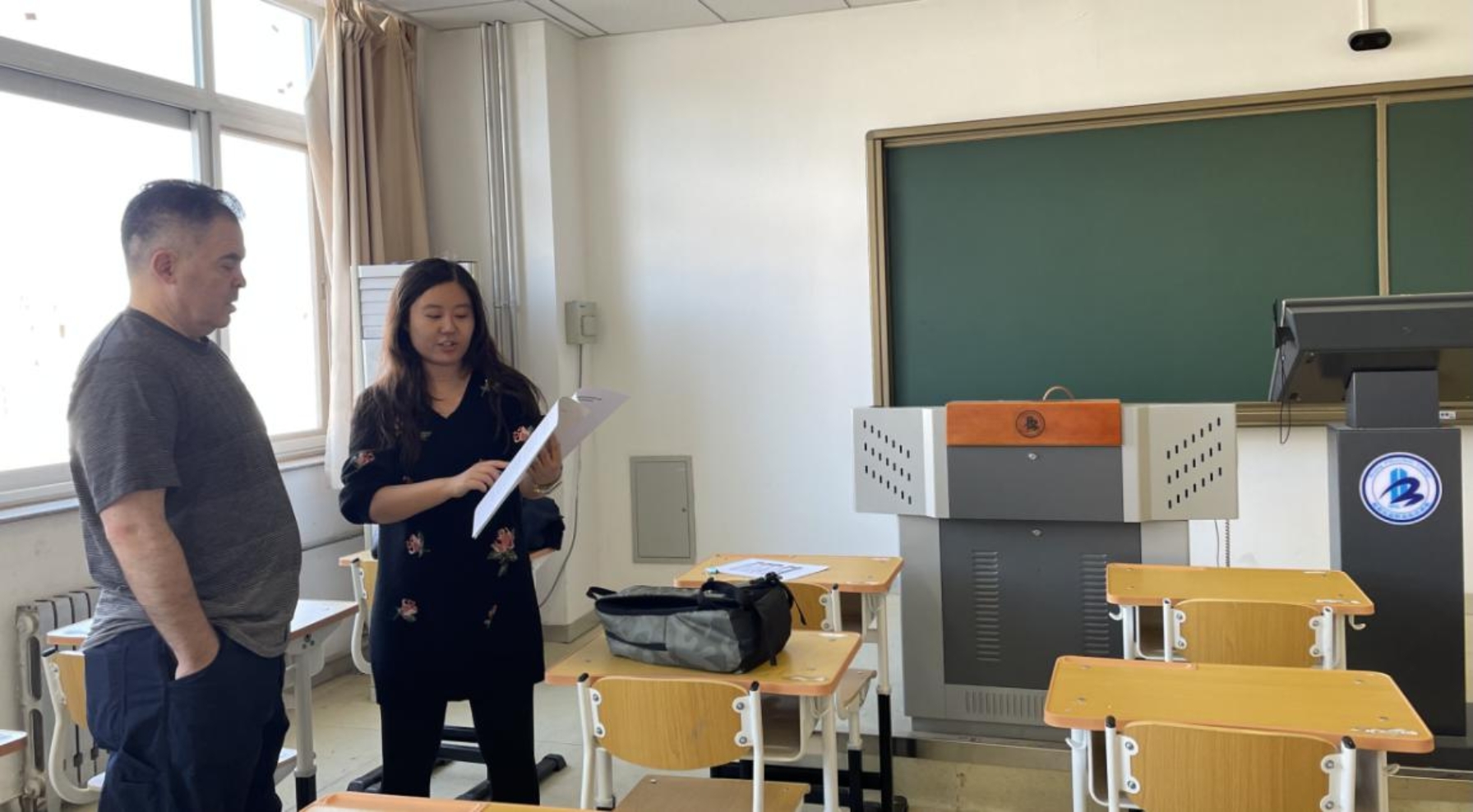 基础教育学院英语辩论社指导教师高远和外教Peter课前检查留学生教案