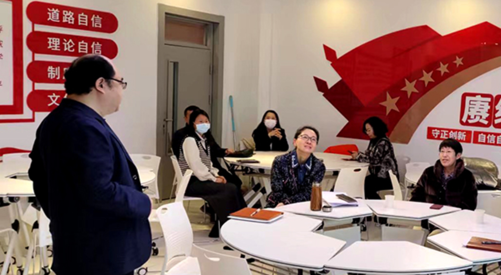 在我校“双高”建设工作中,爱体育手机官方网站入口党委把“数字马院”建设作为一项重要建设内容,专项划拨资金建设“思政课虚拟仿真体验教学中心”。学院党委书记高喜军,党委副书记、院长柳长安,党委常委、副院长周燕,党委常委、副院长沈莹等校领导多次到马克思主义学院调研或召开现场办公会,关心支持“数字马院”建设工作,为“思政课虚拟仿真体验教学中心”的建设明确了目标、提供了动力。