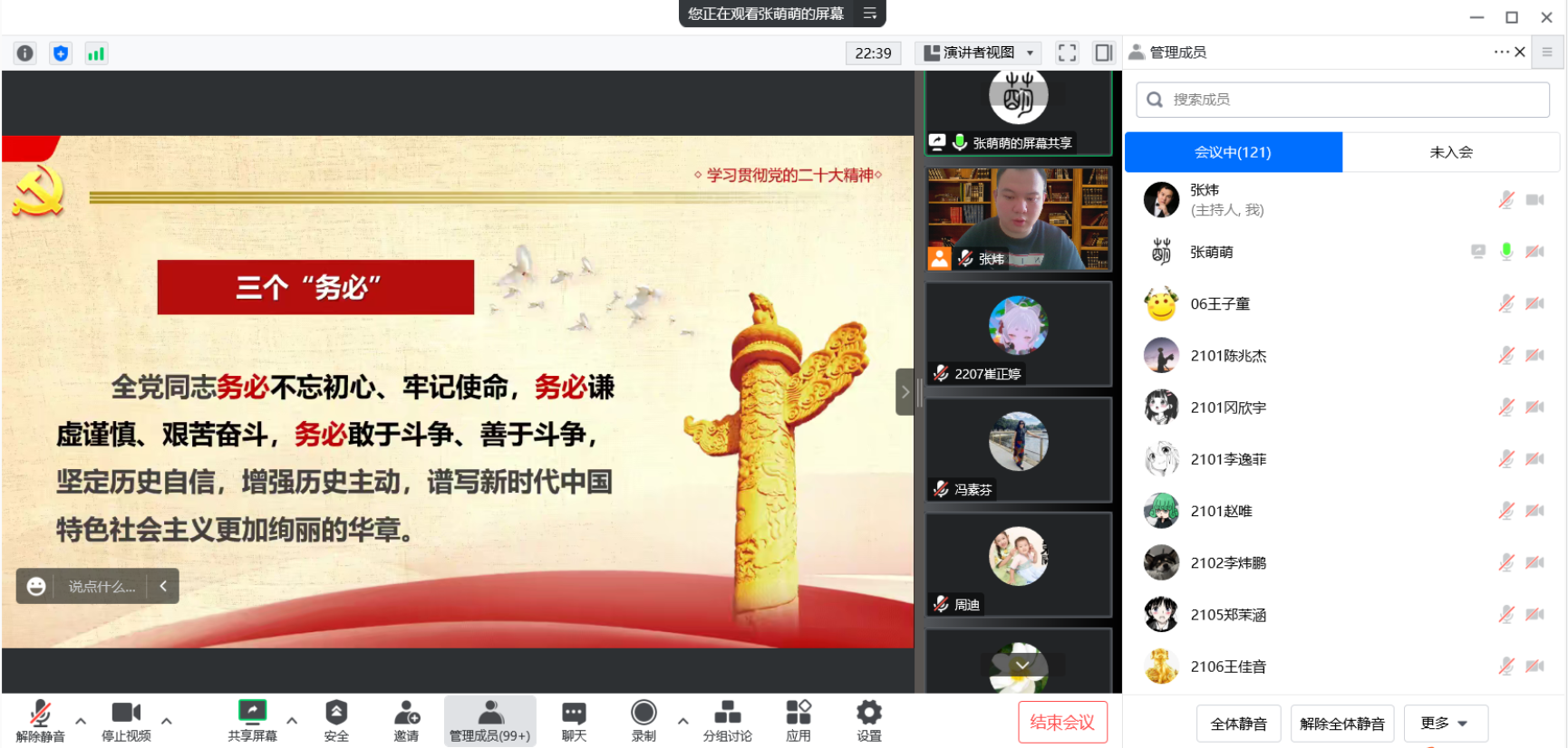 为进一步推进学习宣传贯彻党的二十大精神,促进爱体育手机官方网站入口高质量发展,加快建设高水平高职院校,12月30日上午9:30爱体育手机官方网站入口纪委书记张萌萌教授作了题为《学深悟透党的二十大精神 奋力走好新时代新征程》的专题报告,基础教育学院的全体教职工及学生干部共计120余人参加了本次宣讲会。宣讲会通过腾讯会议进行。