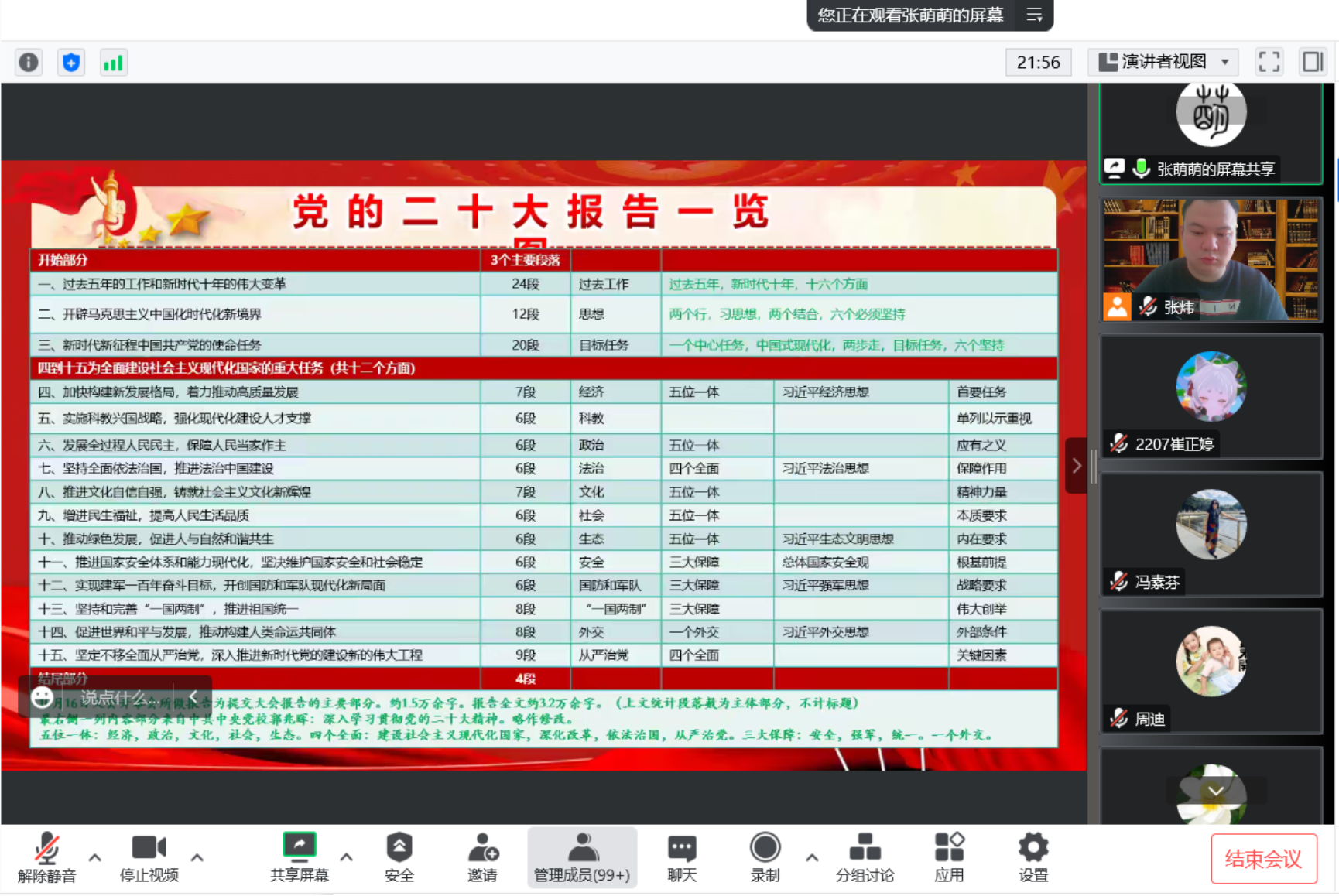 报告会后,基础教育学院党总支书记沈杰、院长任凤国、副院长孙川、党总支副书记张炜四位领导干部通过线上学习,结合本职工作,分享了学习党的二十大精神的体会和感想。