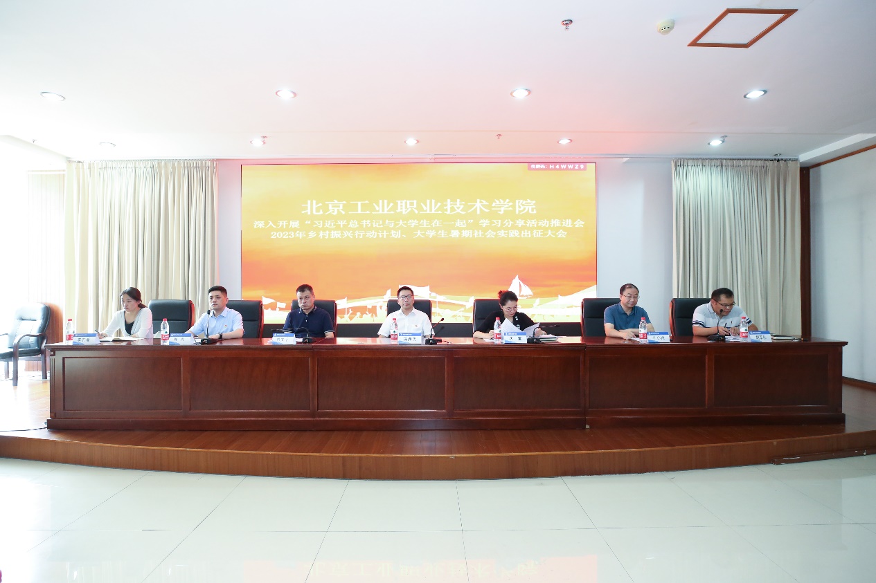 为深入学习贯彻党的二十大精神,开展好学习贯彻习近平新时代中国特色社会主义思想主题教育,落实习近平总书记关于青年工作的重要思想,引领动员广大团员青年踊跃投身社会实践活动,用实际行动在以中国式现代化推进中华民族伟大复兴的使命任务中贡献青春力量。7月7日我校召开深入开展“习近平总书记与大学生在一起”学习分享活动推进会暨2023年乡村振兴行动计划、大学生暑期社会实践出征大会。党委常委、副院长冯海明,党委常委、副院长沈莹,相关职能部门负责人、各学院党总支副书记、团总支书记,服务乡村振兴行动计划团队成员、暑期社会实践团队成员参加本次会议。团委书记郑兴主持本次会议。