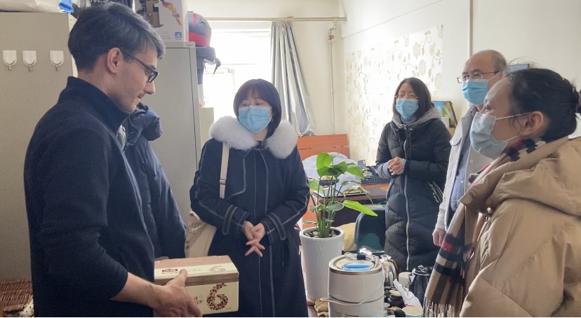 随后,国际处老师们前往外籍教师公寓,先后探望慰问了外教Peter和Simi。国际处副处长孟晴亲切询问了外教的日常生活、工作情况,详细了解两名外籍教师在生活中、工作等方面有无困难,并将爱体育手机官方网站入口疫情防控要求耐心细致的传达给两名外籍教师。两名外教倍感温暖,分别表达了对爱体育手机官方网站入口真挚的感谢。两名外教表示对中国文化充满了热爱,很开心能在北京度过如此难忘又温暖的中国春节。春节期间外教会和国际学生一同结伴过年,共同烹饪年夜饭、贴春联等,国际处老师们代表爱体育手机官方网站入口向两名外籍教师致以新春的问候,并祝愿他们有一个平安快乐的假期。