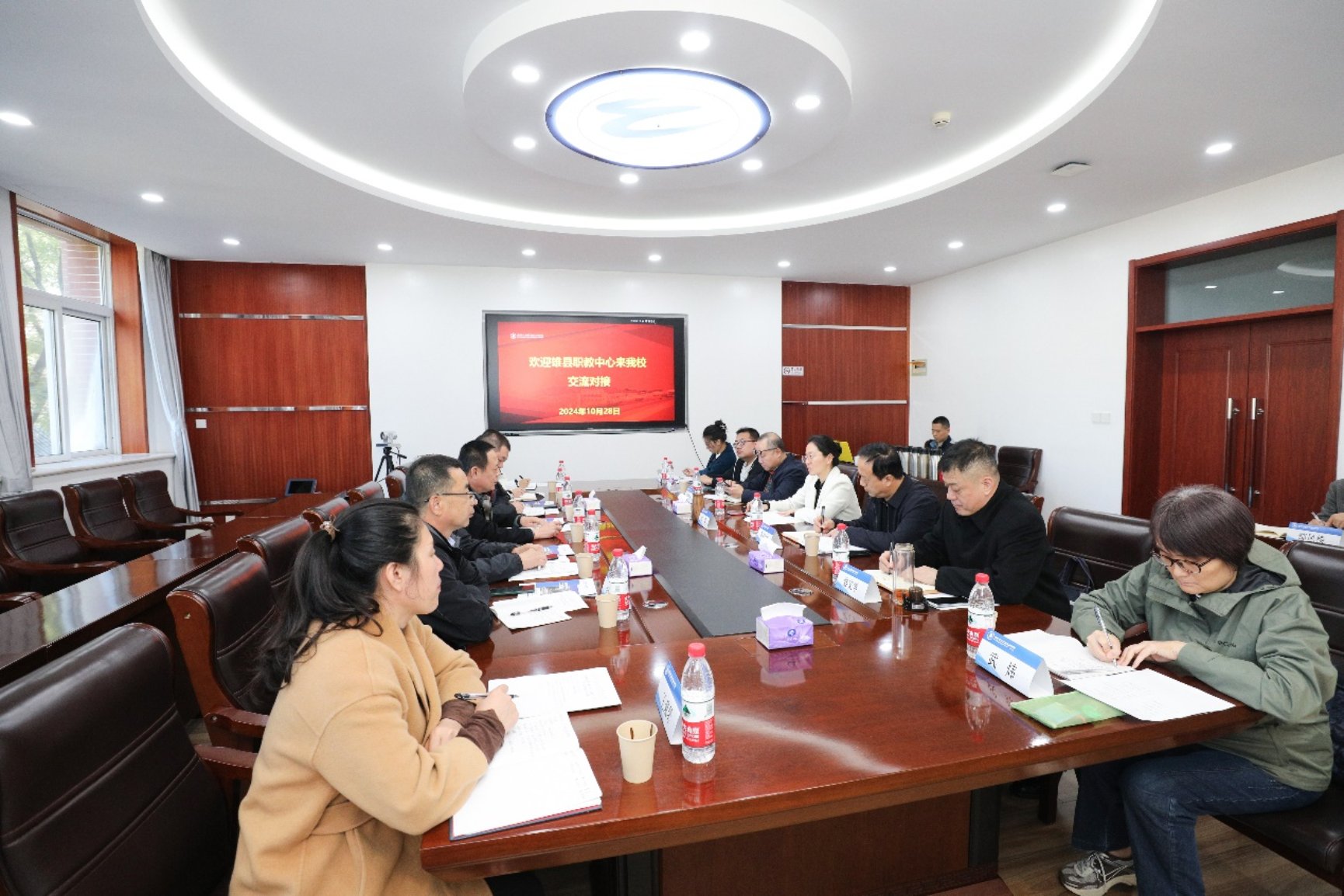 10月28日上午,雄安新区雄县职教中心方泽新校长、张友民副校长、常群良副校长等一行七人来我校交流,深入推进“3+2”中高职衔接合作项目,共同服务京津冀协同发展。我校党委常委、副院长沈莹出席座谈会,会议由招生就业处处长贺继伟主持。
