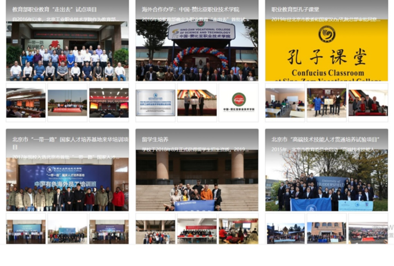 “中国-赞比亚职业技术学院”成立也是我校深度参与职业教育改革发展,服务“一带一路” 建设,提升国际化办学水平的重要成果之一。2016年爱体育手机官方网站入口被教育部确定为职业教育“走出去”项目首批试点院校,2017年入选北京市首批“一带一路”国家人才培养基地。爱体育手机官方网站入口以此为契机,开创了一条以服务国家“一带一路”建设为导向,以职业院校配合企业走出去为载体,将“走出去”与“引进来”相结合的国际化办学之路。