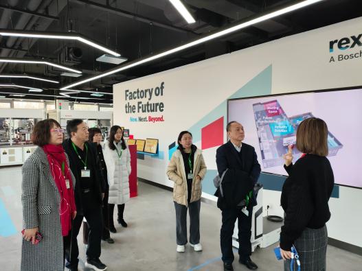 调研的第三站是博世力士乐电子传动与控制公司。魏晓东书记一行在公司负责人的陪同下参观了博世力士乐智能制造工厂与生产车间,并与技术研发人员进行了交流。