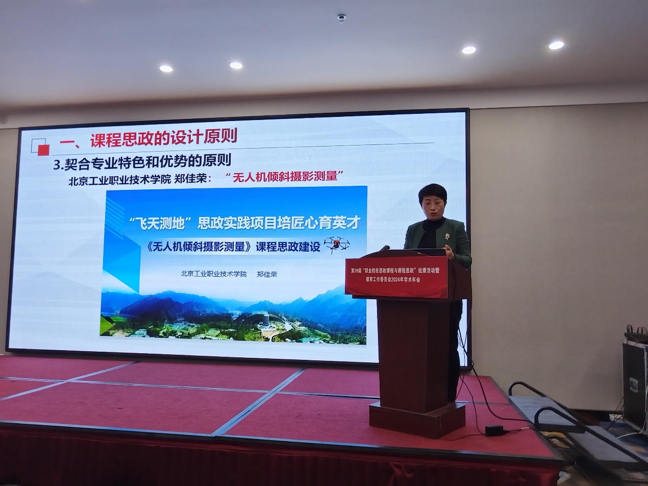 为深入贯彻党的二十大、党的二十届三中全会精神和习近平总书记关于思想政治教育的一系列重要指示,贯彻落实全国教育大会精神,强化思政引领力,推动思想政治理论课改革创新,促进思政课程与课程思政同向同行,2024年11月1日,职业院校思政课与课程思政说课研讨会暨全国职业教育德育工作委员会2024年学术年会在河北石家庄举办,全国200余所中高职院校参会。大会主题是“职业院校思政课与课程思政说课研讨”,我校教师郑佳荣主持的《无人机倾斜摄影测量》课程在我校教务处和建筑与测绘工程学院打磨和推荐下从全国700余门课程中脱颖而出。