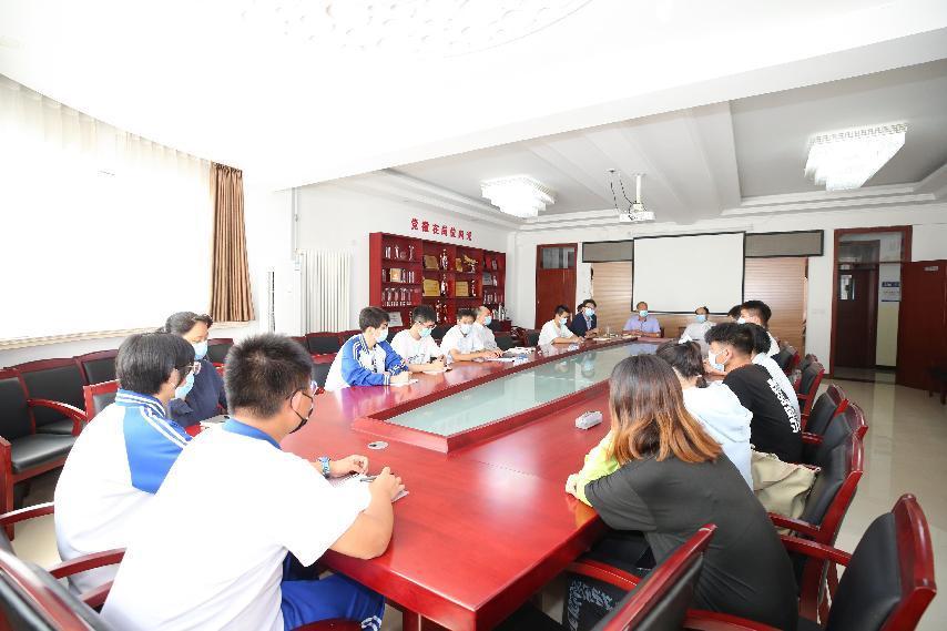 新学期伊始,党委书记高喜军同志主持召开新学期学生座谈会,关心了解学生的思想动态和学习生活状况,收集学生对爱体育手机官方网站入口教学管理、疫情防控等方面的意见和建议,扎实推进我校学生思想政治教育工作实效。座谈会于9月9日下午13:00在博学楼二层会议室召开。党委副书记魏晓东出席座谈会,党委宣传部、学生工作处、团委、马克思主义学院、各二级学院相关负责人、教师代表以及来自五个学院的十五名学生代表参加了座谈会。
