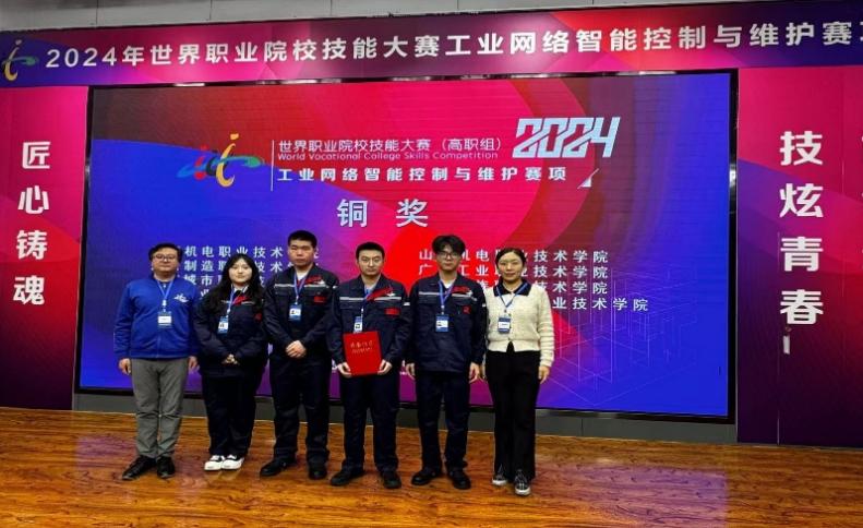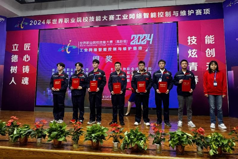 2024年10月24至26日,世界职业院校技能大赛总决赛争夺赛装备制造赛道“工业网络智能控制与维护”赛项在内蒙古自治区包头举办。来自全国30个省、自治区、直辖市的60支代表队同台竞技。我校机电工程学院参赛队作为北京市“工业网络智能控制与维护”赛项代表队参与此项赛事。经过激烈角逐,由许鹏、张明珠两名老师指导的,王馨彦、房宇航、姜泽宁、段超宝组成的机电学院学生团队最终获得小组第四名,斩获铜奖。