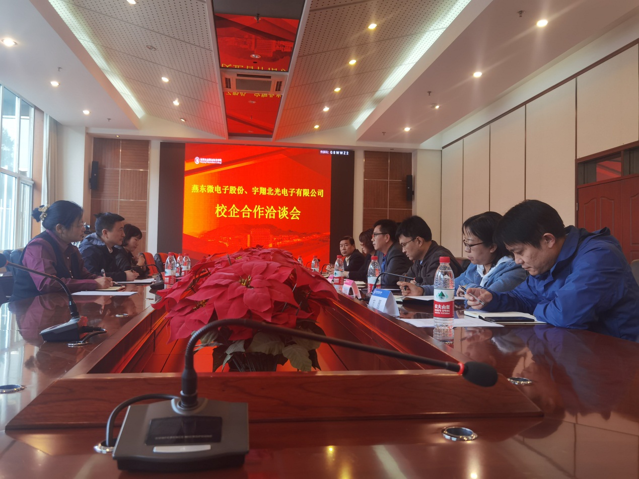 10月13日下午,北京燕东微电子有限公司党委书记王海鹏带领人力资源部招聘主管田艳红、北京宇翔北光电子有限公司人力资源总监李立松来校洽谈合作事宜。副校长刘兰明、纪委书记张萌萌及爱体育手机官方网站入口有关部门领导张春芝、徐炜彦、王巍、张波、侯瑾、方园参加了座谈交流活动。
