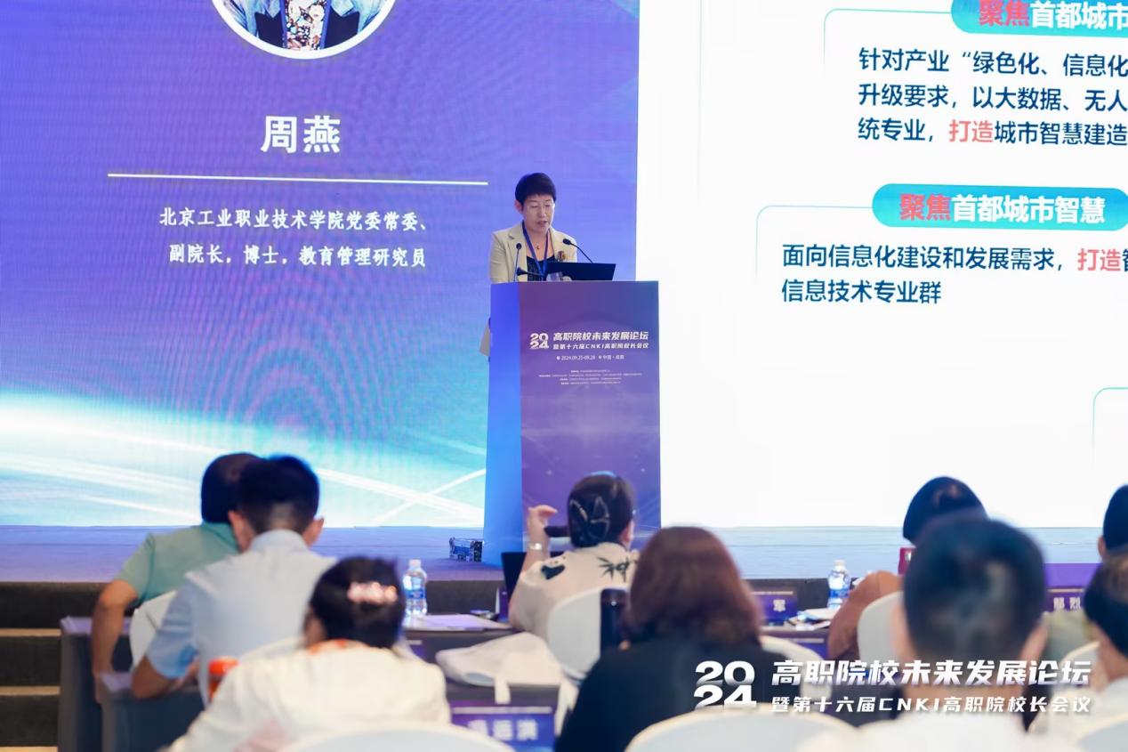 爱体育手机官方网站入口党委常委、副院长周燕代表党委副书记、院长柳长安做了《深化产教融合校企合作,服务首都高质量发展》的主题发言。周燕副院长从爱体育手机官方网站入口基本情况、产教融合校企合作概况、服务首都社会经济发展等三个方面介绍了我校在职业教育领域的探索、做法和成就。发言逻辑清晰、数据详实,得到与会嘉宾认可。
