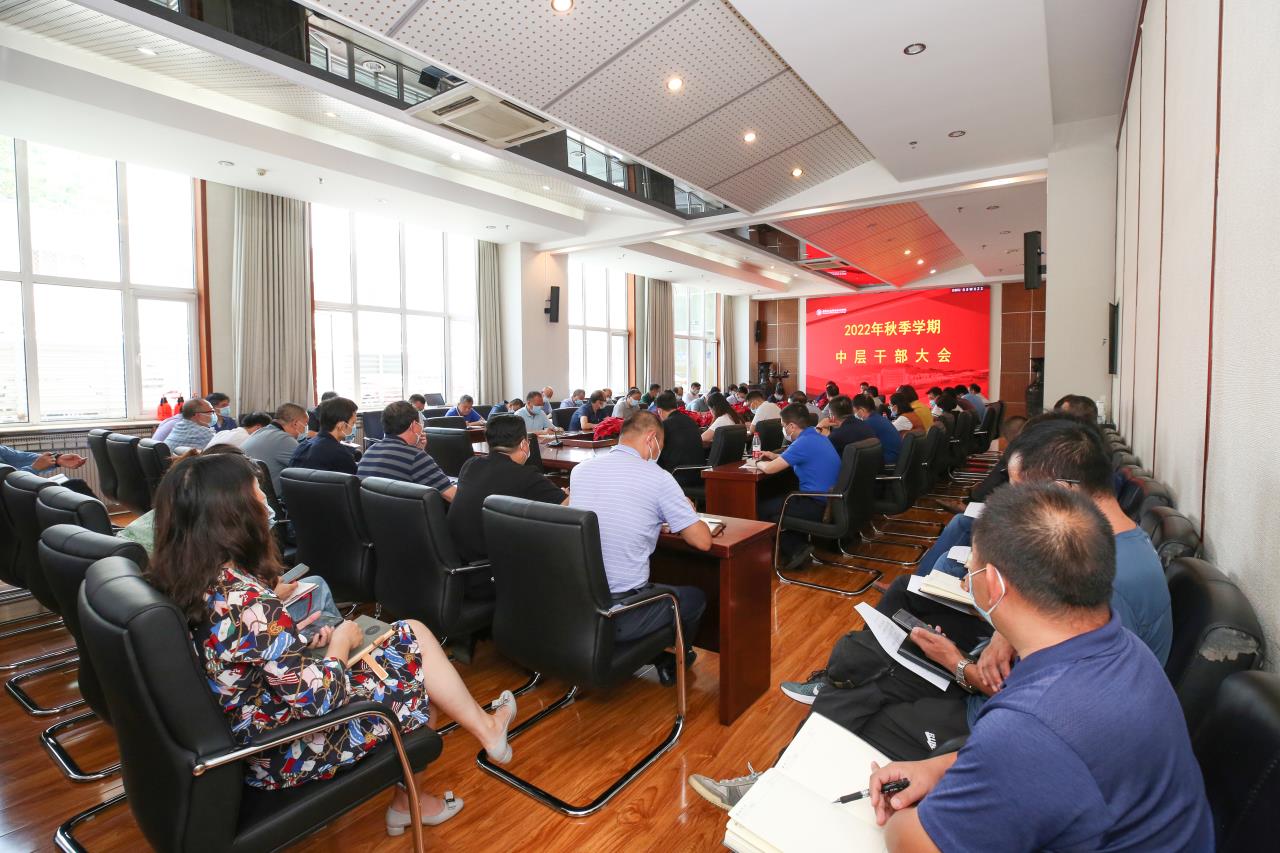 8月30日上午,爱体育手机官方网站入口在匠心楼一层第四会议室召开了秋季学期中层干部大会,会议由校党委书记高喜军主持,全体校领导以及中层干部参加会议。