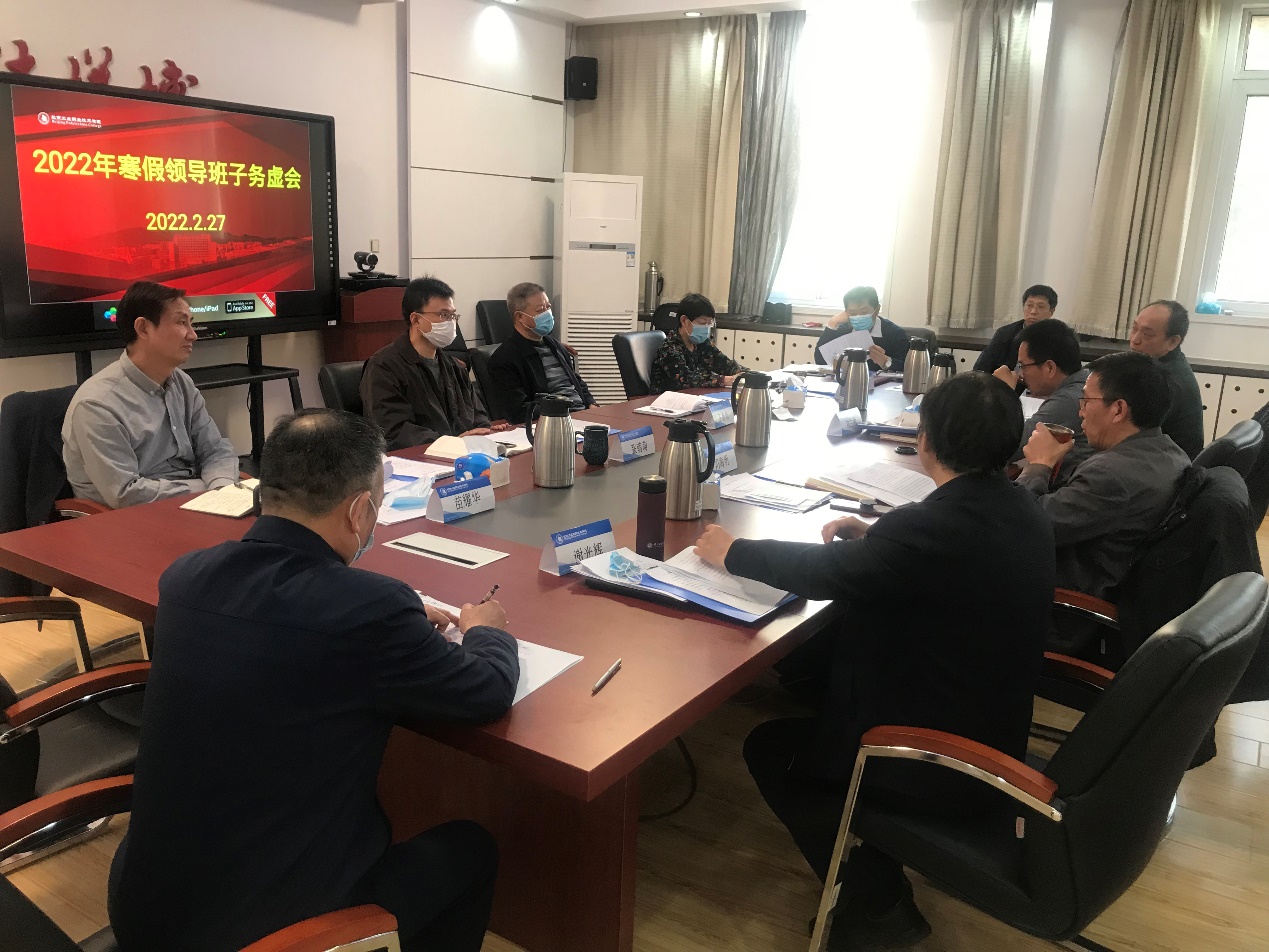 2月27日,在厚德楼二层东侧会议室召开了2022年寒假领导班子务虚会。会议由党委书记高喜军主持,校领导安江英、魏晓东、周燕、刘兰明、王希忠、冯海明、张萌萌、谢光辉出席会议。部分职能部门负责人列席了会议。