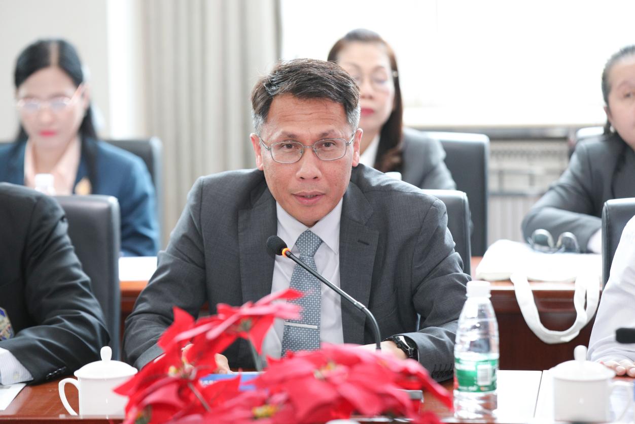 泰国教育部副常任秘书长塔努·昆德贾发表了致辞。塔努秘书长对爱体育手机官方网站入口的热情接待表示了衷心的感谢。他提到,泰方非常重视和支持职业教育,希望通过与中国职业教育院校的交流,吸收中国先进的教育教学经验,促进泰国职业教育的发展,期待未来泰国能有更多师生来到中国交流学习。