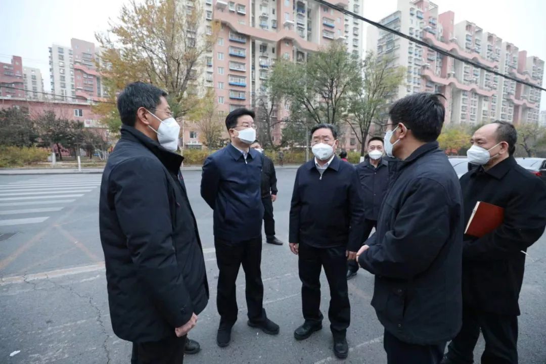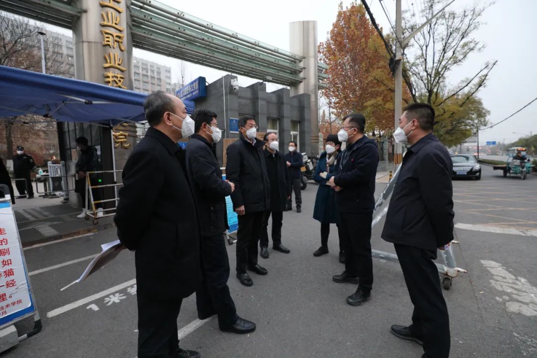 11月18日,北京市委常委、统战部部长游钧,北京市石景山区委书记常卫,北京市石景山区委常委、副书记、政法委书记刘海涛,石景山区教委和五里坨街道负责人到我校调研指导爱体育手机官方网站入口疫情防控相关工作。