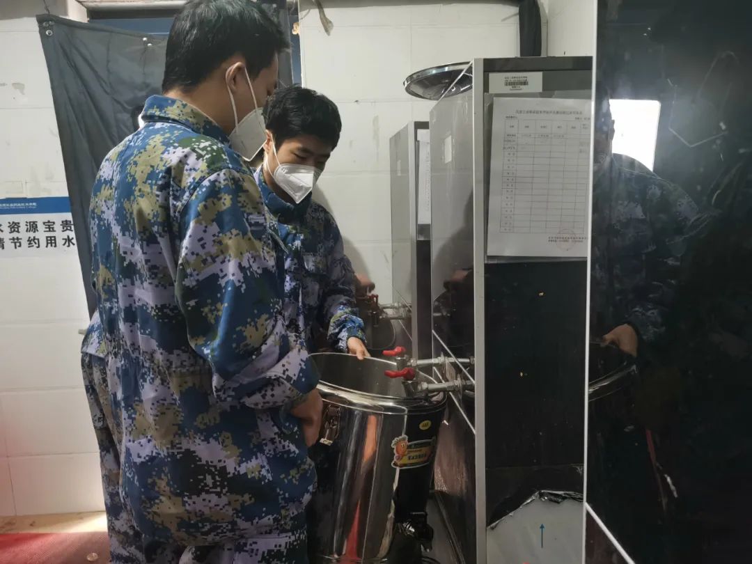 为了保证同学们能够在宿舍喝上热水,后勤集团以最快速度采购了45个保温桶。18日夜,师生志愿者连夜将装满热水的保温桶分置于学生公寓各楼层。