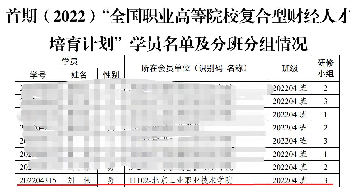 近日,中国教育会计学会职业教育专业委员会公布首期(2022)“全国职业高等院校复合型财经人才培育计划”学员名单,按照既定的遴选程序,经会员单位推荐,职教财务专委会和高职会计分会联合初审、复审、测试、综合评价、集中研修品行察看,从各会员单位先后推荐的共 334 名学员候选人中确定首期( 2022)“全国职业高等院校复合型财经人才培育计划”学员 126 名。我校财务处刘伟老师经职教财务专委会和高职会计分会层层选拔成功入选。