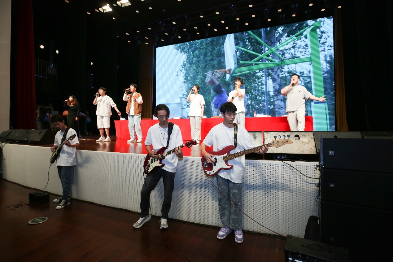 大屏幕播放的毕业纪念视频拉开典礼的序幕。一帧帧熟悉的画面、一张张灿烂的笑脸串联起同学们在北工院生活的点点滴滴,展示着独属于北工院的青春记忆。北工院记录着大家的青葱岁月,同学们也见证了北工院的荣耀时刻。毕业生、在校生带来的歌曲,燃起了现场的欢呼与热潮。