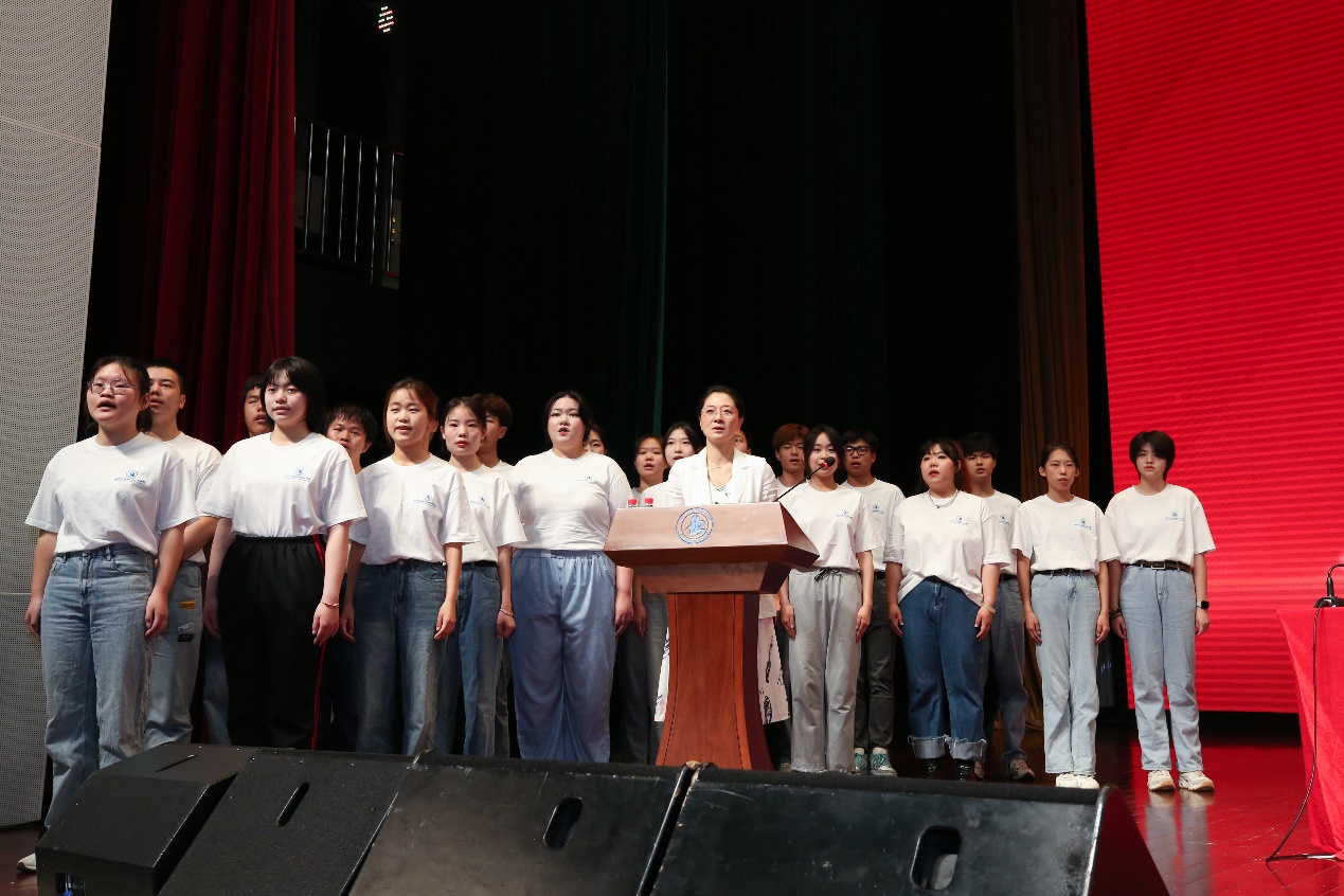 校领导,职能部门负责人,各二级学院院长、党总支副书记,辅导员、毕业班班主任、全体毕业生共同见证了这特殊而神圣的时刻。党委副书记、院长安江英,为毕业生上大学最后一堂“大思政课”,嘱托大家心怀家国天下、勇担青春使命。典礼由党委常委、副院长沈莹主持。