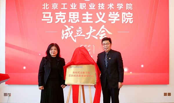 中国职业技术教育学会会长、教育部原副部长鲁昕与校党委书记王伟为我校马克思主义学院揭牌
