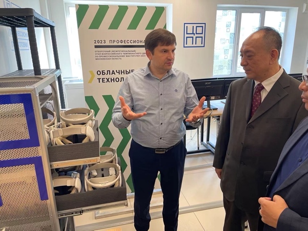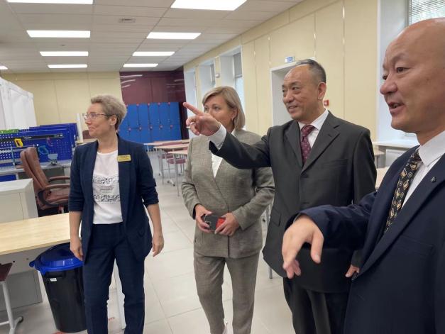 团组前往莫斯科州能源学院,与该院院长进行交流座谈并参观了实训基地及教室,了解校企合作领域开展的育训融合成果。