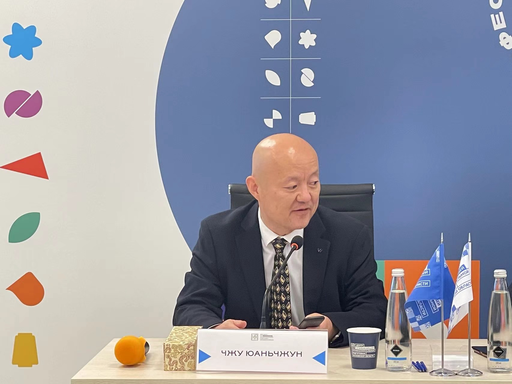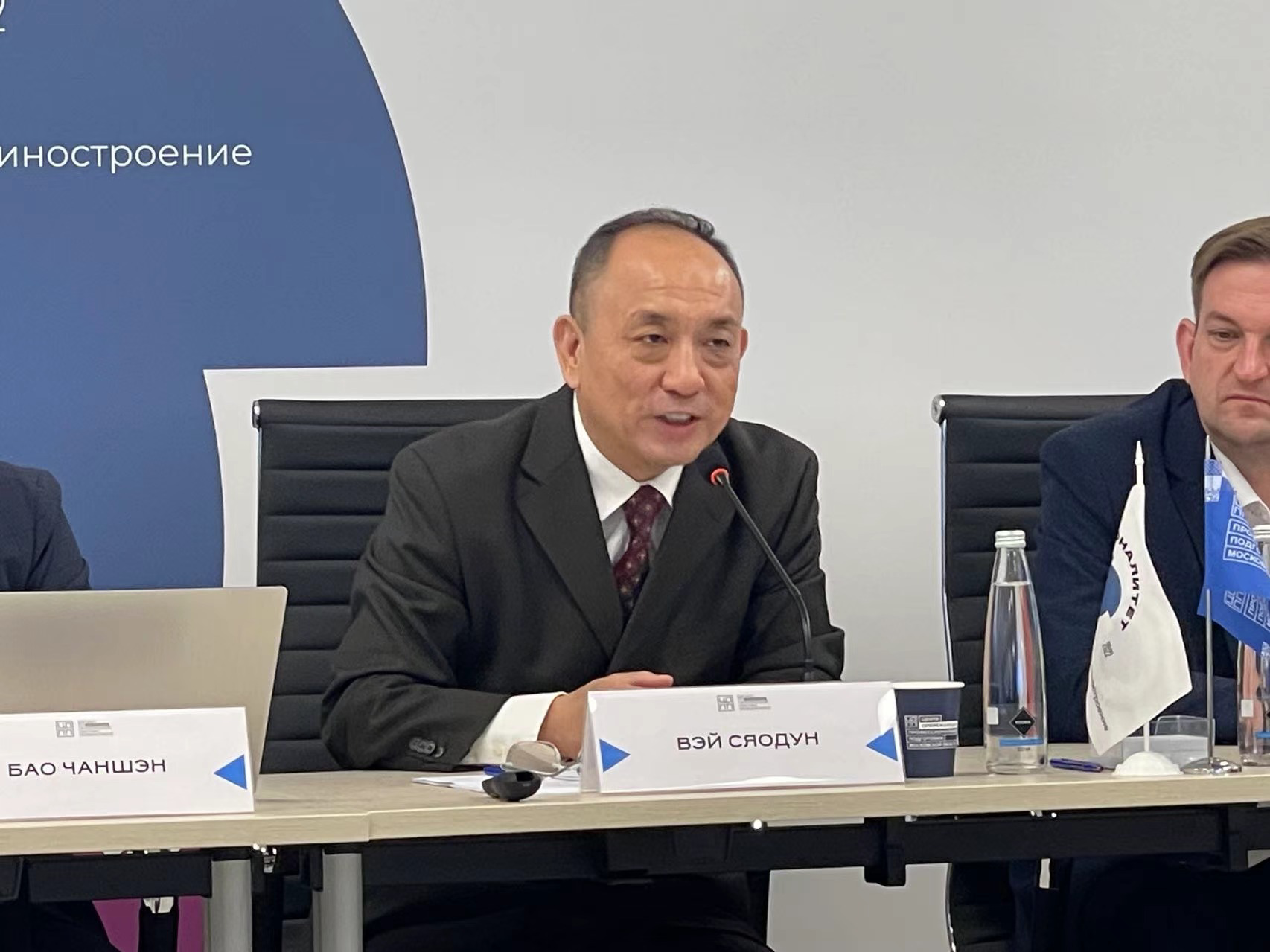 魏晓东副书记向克拉斯诺亚尔斯克市职业教育发展中心介绍我校办学情况