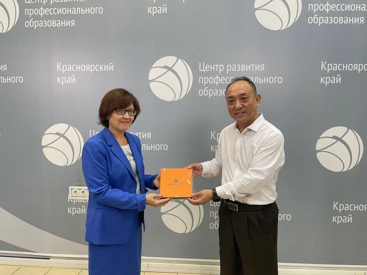 我校出访团一行还到访了俄罗斯克拉斯诺亚尔斯克市职业教育发展中心。克拉斯诺亚尔斯克市职业教育发展中心副主任叶莲娜·阿丽克桑德洛夫娜详细介绍了职业教育发展中心的工作职能、近年来工作成果和未来规划。双方就开展两国间职业技能大赛、大力推进青少年交流和职业院校间的国际合作、大力推进高质量共建“一带一路”教育国际合作等达成了多项共识。